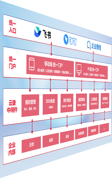 对协作平台提供支持服务,,,支持企业应用与协作平台对接,,包含组织同步、、、、消息集成、、、待办集成等。。。支持目前主流的协作平台:钉钉、、、企微和飞书。。。。